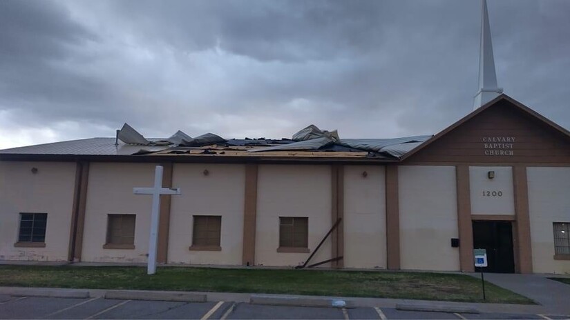 Dusty Marshal Calvary Baptist roof took a hit. Multiple reports of block walls damaged and blown transformers around the region.