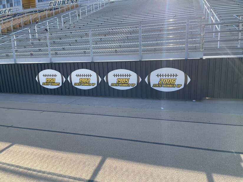The stadium now pays tribute to the one football state title and the three years as runner up at the state championship.