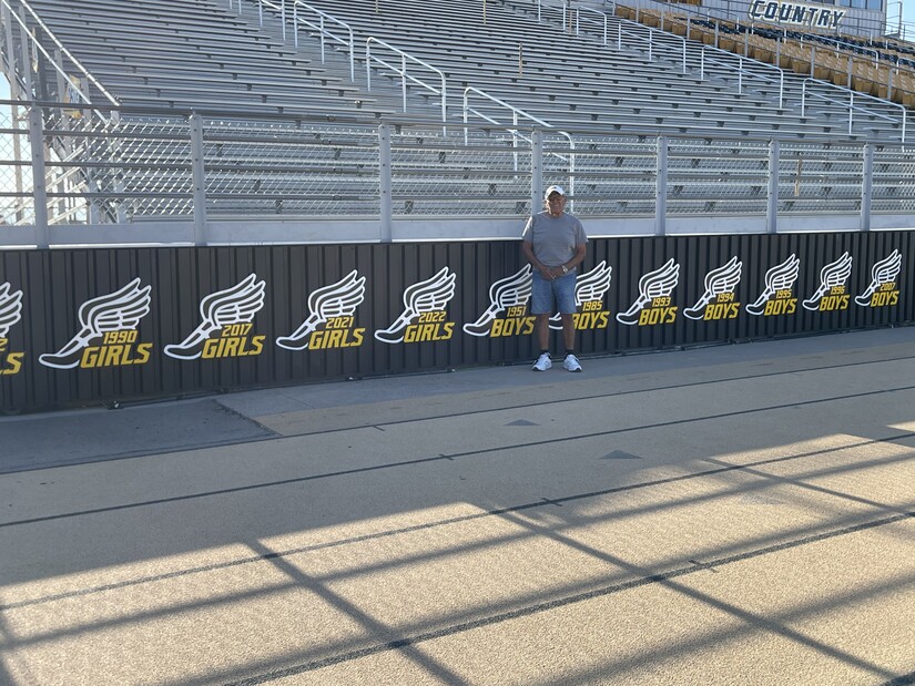 The stadium facelift now showcases the track and field state titles to include the 5 girls state titles beginning in 1982 which was coached by Marilyn Sepulveda to the most recent ones won by Coach Jason Adkinson. Also featured are the 7 boys titles with the first won by Coach Rolla Buck in 1951, 5 won by Coach Bob Sepulveda and 1 by Coach Joe Bryant in 2007.