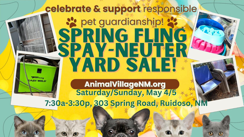 If up the mountain in Ruidoso join Animal Village Saturday and Sunday for the pet guardianship Spring Fling and Soay and Neuter Sale 730 am to 330 pm 303 Spring Road, Ruidoso.