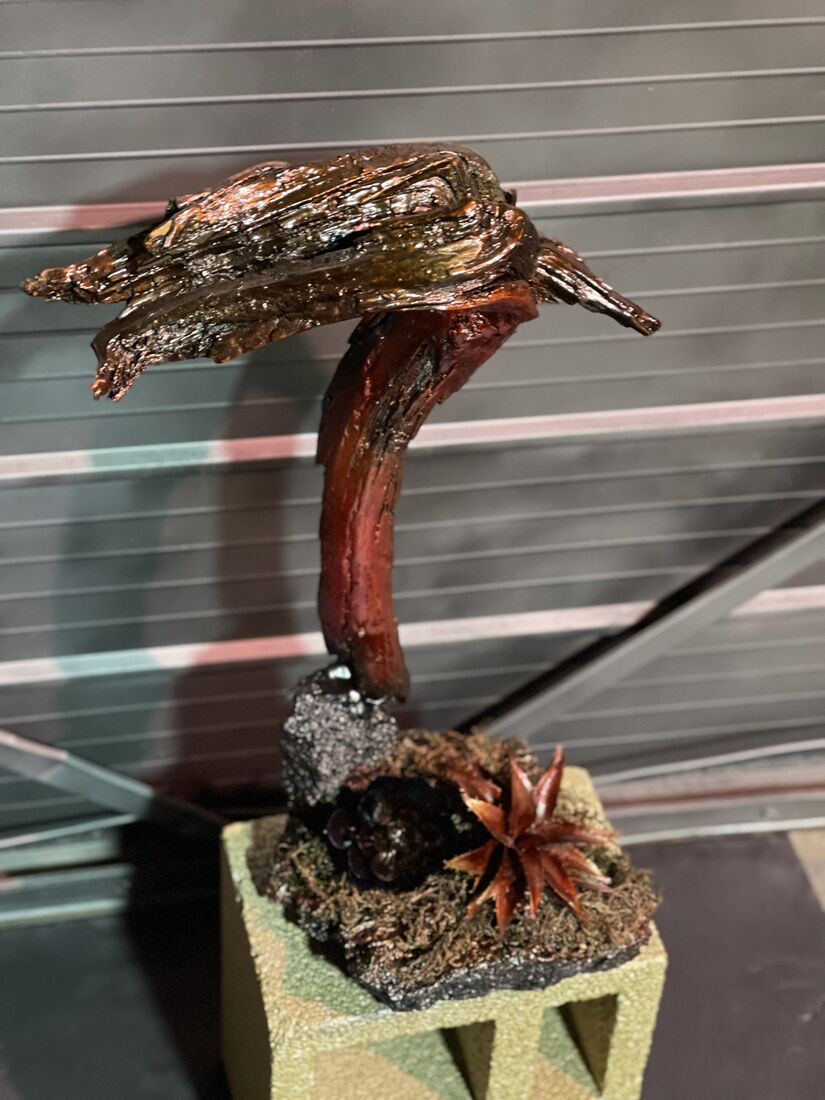 The molten lava rock he uses in his sculptured pieces is repurposed rock pulled from abandoned homes and abandoned locations; repurposed into a “second life” as an “artistic sculpture” to bring joy and value to the owner of each unique piece.