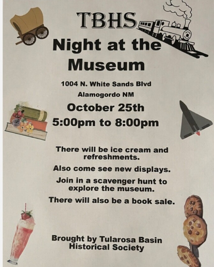 The Tularosa Basin Museum of History is opening its doors for a special evening of community, culture, and celebration on Thursday, October 25, from 5:00 to 8:00 PM, inviting residents and visitors alike to experience “A Night at the Museum”—a family-friendly event that blends historical discovery with sweet treats and interactive fun.