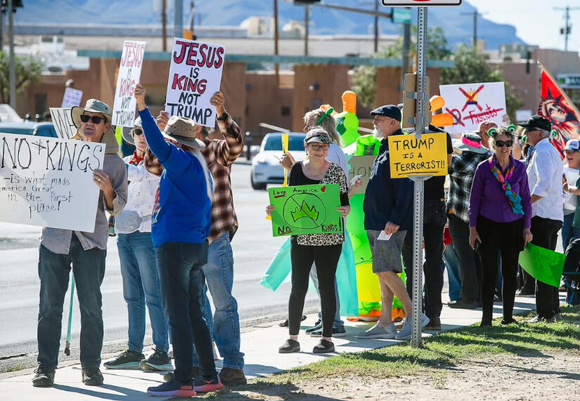In Alamogordo, New Mexico, more than 300 residents gathered throughout the day to participate in the “No Kings 2” protest, joining a wave of demonstrations that swept across Ruidoso, Albuquerque, and cities nationwide. Organizers described the turnout as “steady and passionate,” with participants coming and going throughout the event. The protest was part of a historic national mobilization, with over 7 million Americans reportedly taking part—marking it as the largest coordinated protest in modern U.S. history.