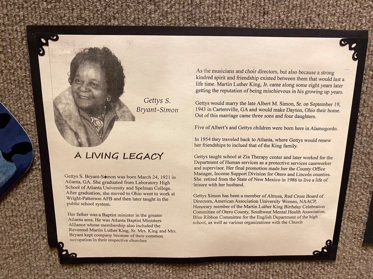 The exhibit also honors the academic and professional achievements of its residents. Lawrence Johnson who would later become Alamogordo High School’s first African American Athlete Director, Fred Boyce, Lavone Coleman, and many others were expected to attend college—and most did. Ethel Simon earned her master’s degree in Las Cruces and became a pioneering example for the neighborhood in education and community service.