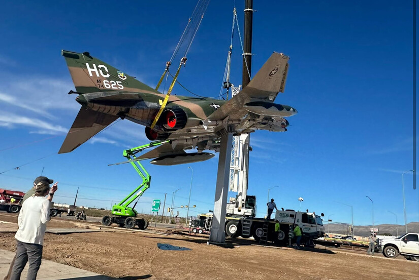 After thousands of volunteer hours and years of planning, the iconic F-4 Phantom jet has officially come to rest at the corner of Highways 54 and 70. The aircraft, gifted to the city several years ago, now anchors the Gateway Freedom Monument, a tribute to Alamogordo’s deep ties with Holloman Air Force Base and the men and women who have served.