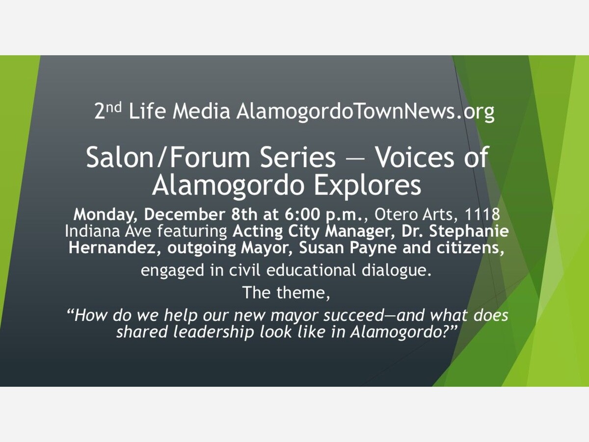 Alamogordo, NM — 2nd Life Media’s AlamogordoTownNews.org is proud to announce the launch of a six-month series of monthly community salons designed to spark dialogue, deepen civic understanding, and connect residents directly with the leaders and organizations shaping Alamogordo’s future.