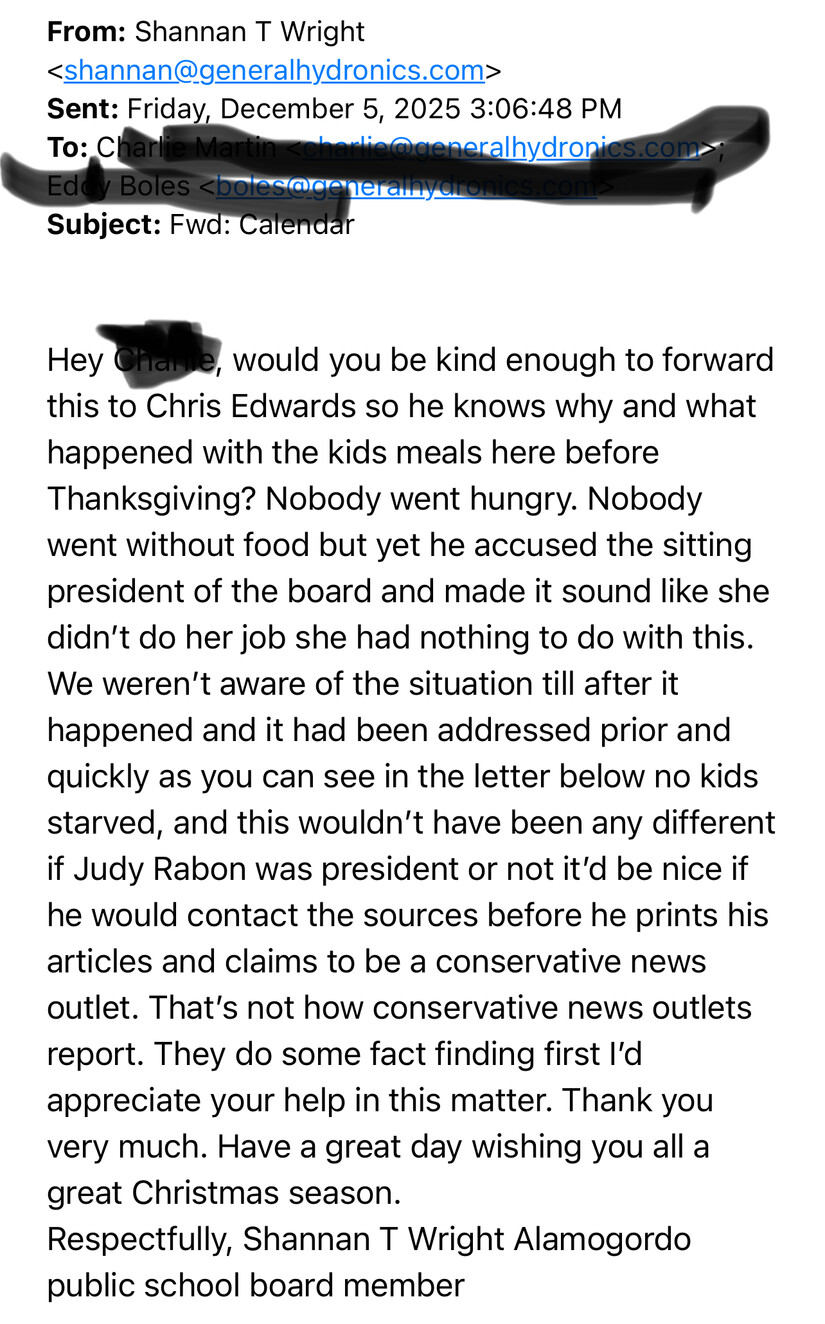 The question now is not whether students ate lunch that day. Most did. The question is whether Alamogordo’s school board leadership is upholding the standards of transparency, accountability, and ethical conduct expected of public servants. And whether the press, operating within its rights as a 501(c)(4), will continue to shine a light on those moments when power and responsibility fall out of balance- it will!
