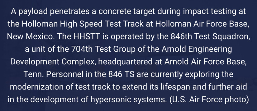 While Pentagon officials have discussed the long-term need for expanded national hypersonic testing capacity, no funding, site selection, or approval exists for a second sled track anywhere, including Holloman. The current focus remains on modernizing the one-of-a-kind facility we already have.