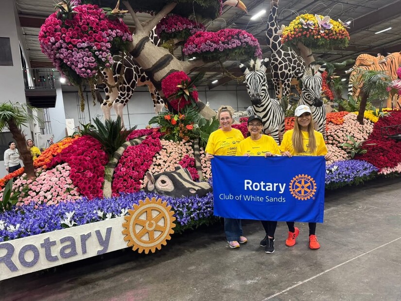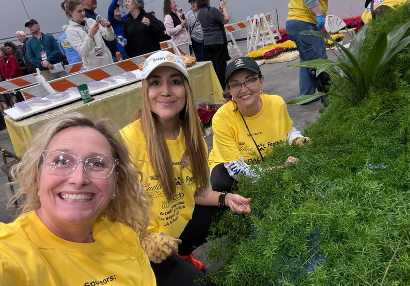 Rotary of the White Sands Alamogordo representing #AlamogordoProud at Tournament of Roses Parade - Photos Courtesy Rotary of the White Sands Alamogordo - AlamogordoTownNews.org Community Good Report Gabriela Eaton, Michelle McKinstry, and Renee French joined fellow Rotarians from across the country in the final frenzy of decorating. Late into the night, surrounded by tens of thousands of fresh roses and natural materials, they added those magical finishing touches—tired but joyful, inspired by the camaraderie and shared purpose.