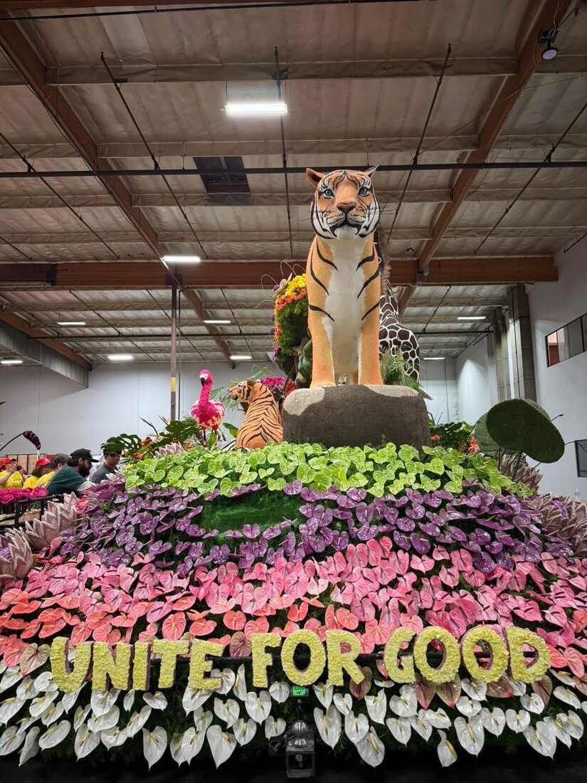 Rotary of the White Sands Alamogordo representing #AlamogordoProud at Tournament of Roses Parade - Photos Courtesy Rotary of the White Sands Alamogordo - AlamogordoTownNews.org Community Good Report This year’s parade theme, “The Magic in Teamwork,” perfectly mirrored Rotary’s 2025-2026 message: “Unite for Good.” The Rotary float, titled “Unite for Good,” exploded with color and energy in a lush, dreamlike landscape featuring diverse wildlife—like giraffes, tigers, and more—working in harmony. It symbolized how Rotarians worldwide unite across borders to protect ecosystems, provide clean water, promote peace, and create lasting change