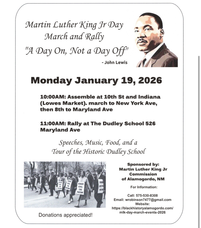 Alamogordo, NM – As Dr. Martin Luther King Jr. Day approaches on Monday, January 19, 2026, the Alamogordo community is gearing up for its annual tradition of honoring Dr. King’s legacy through a peaceful march and gathering focused on unity, nonviolence, and service.