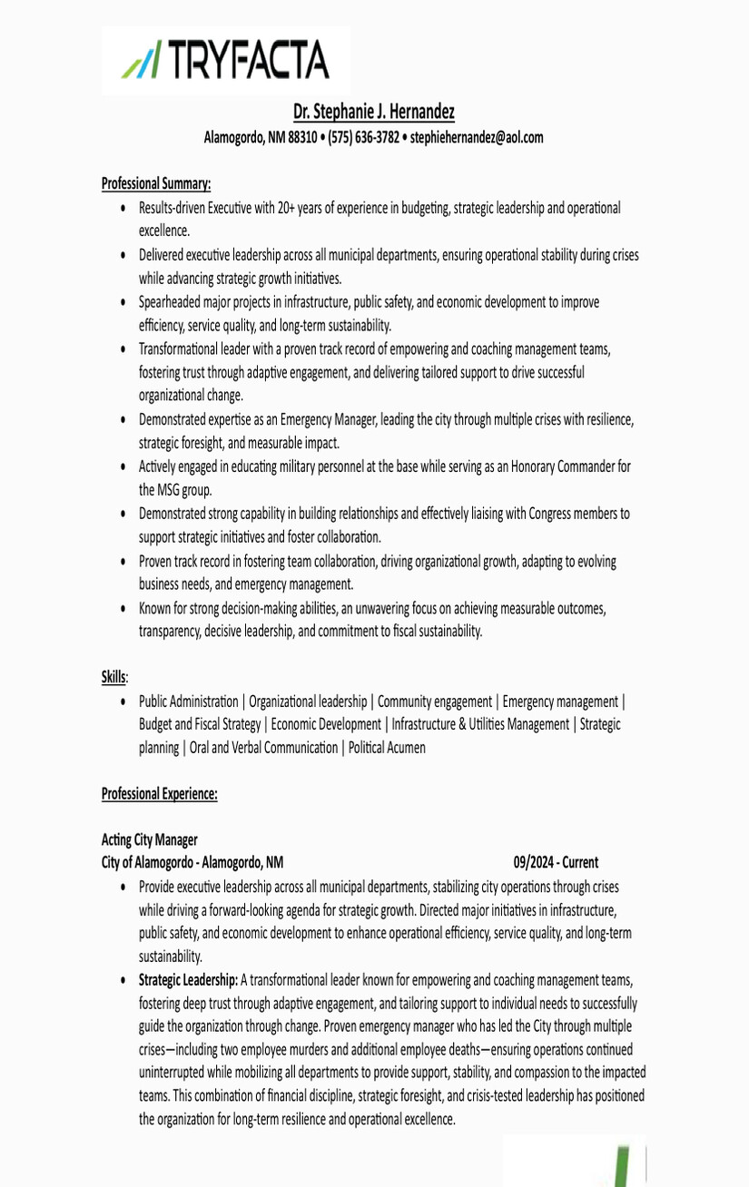 Dr. Stephanie J. Hernandez – Acting City Manager (Alamogordo, NM)