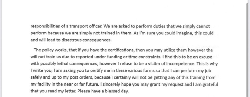 The primary point of contention is a complete lack of certification in essential safety protocols. Staff members allege they are being asked to perform the duties of "transport officers" without the required training or firearms certifications. The whistleblower letter states: