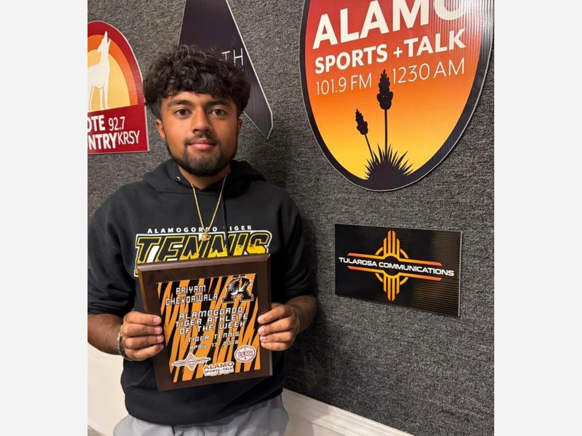 Congratulations to Priyam Chevdawala of the Alamogordo High School Tiger Tennis team, named Tiger Athlete of the Week for April 17, 2026. The honor is sponsored by Tularosa Basin Telephone Company/Tularosa Communications, Inc. and The Winners’ Circle.